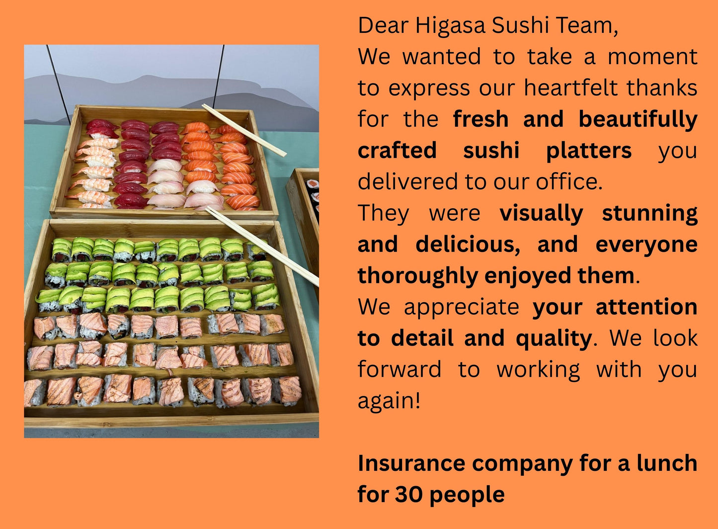 Our team works hard to provide delicious sushi and convenient delivery and this award is a testament to our passion.